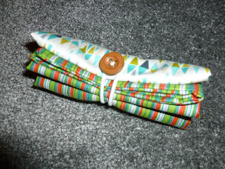 On Friday it was FNSI time.We had a very nice visitor, so I pushed it to the early Saturday evening, when our little boy was sleeping for around one hour and the next visitor hadn't arrived yet. I sew a little tote bag, which you can roll-up and fix it with a elastic and a botton. So it fits nearly in every pouch. Sewing the label to the tote bag, the door bell rang and the next visit arrived. I made the tote bag for her birthday next Wednesday, but couldn't resist to give it to her right now, so I can see her reaction. And she likes it! :D